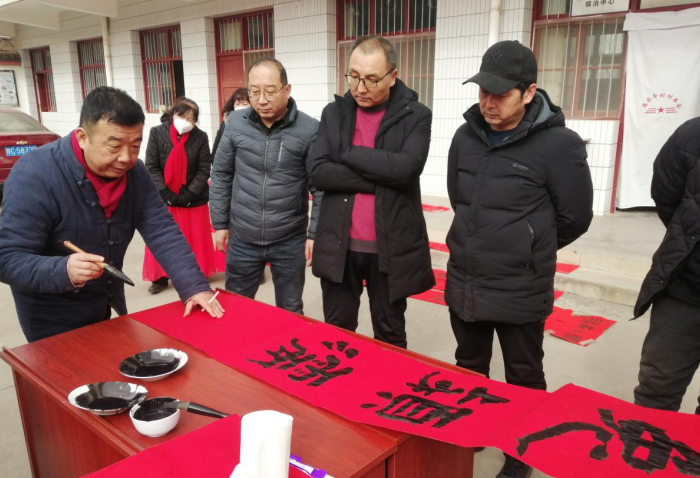 “大半輩子了,第一次看到專業(yè)老師寫對(duì)子,真的是大開眼界!”年過六旬的辛姓老人提著一幅剛寫好的春聯(lián),滿心歡喜地對(duì)旁邊的村民說。