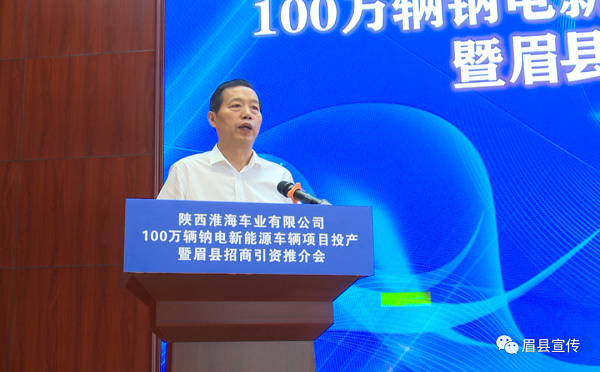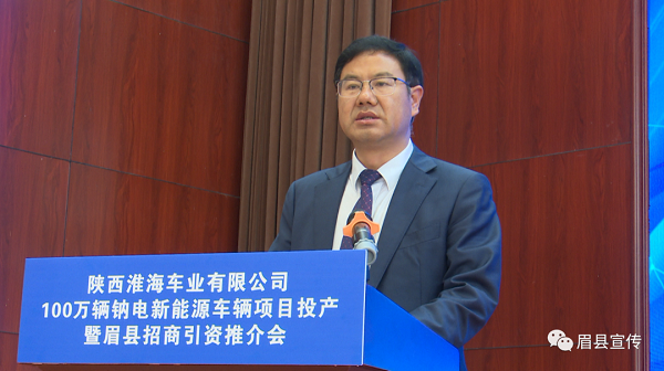 6月18日,陜西淮海車業(yè)100萬輛納電新能源車輛項目投產(chǎn)儀式暨眉縣招商引資推介會在縣委黨校召開?;春?毓杉瘓F董事長安繼文,淮??毓杉瘓F副總裁王國峰、韓運鎮(zhèn),縣委書記王繼萍,縣人大常委會主任戴慧萍,縣委常委、政法委書記張曉斌,副縣長田皓園,政協(xié)副主席孫鳳云,縣獼猴桃產(chǎn)業(yè)園區(qū)黨工委書記、管委會主任汪午強,太白山旅游區(qū)管委會副主任張新林、縣經(jīng)開區(qū)黨工委副書記孫偉參加活動??h長張小平主持。