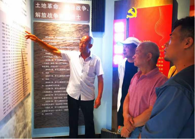 書畫家們一到村委會(huì)就揮毫潑墨,為群眾饋贈(zèng)書畫。上午十點(diǎn),村民們敲著鑼鼓,扭著秧歌,將書畫家們迎請(qǐng)到黨史館,村書記閆國棟親自講解黨的建設(shè)和發(fā)展史,講解羅子山鎮(zhèn)和西渠村革命先烈們的光輝事跡,給書畫家們上了一堂生動(dòng)莊嚴(yán)、激情澎湃的黨史教育課。