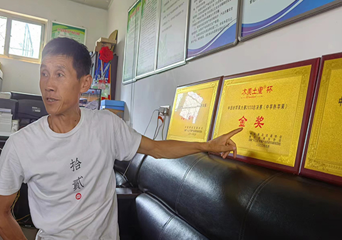 魏小杰在介紹自己種蘋(píng)果的成績(jī)