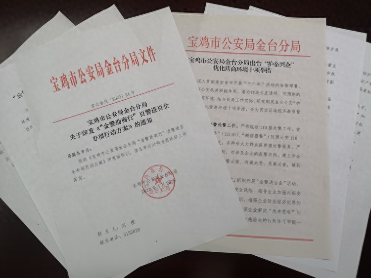 一是黨委主抓。分局黨委從高站位、謀長(zhǎng)遠(yuǎn)角度出發(fā),成立由11名局領(lǐng)導(dǎo)擔(dān)任隊(duì)長(zhǎng),以科所隊(duì)長(zhǎng)及“亮金警”金臺(tái)警星等103名警力為主體力量的11支護(hù)企興企警星工作隊(duì),履行治安防控、矛盾糾紛化解、隱患排查整治、安全防范宣傳等職責(zé),保障企業(yè)安全,以點(diǎn)帶面,全面開(kāi)展優(yōu)化營(yíng)商環(huán)境工作。二是方案統(tǒng)領(lǐng)。印發(fā)《寶雞市公安局金臺(tái)分局推進(jìn)營(yíng)商環(huán)境突破年實(shí)施方案》,出臺(tái)6個(gè)方面16項(xiàng)任務(wù)舉措,明確工作目標(biāo)、重點(diǎn)任務(wù)、成果形式、責(zé)任單位;制定《寶雞市公安局金臺(tái)分局“金警助商行”百警進(jìn)百企專項(xiàng)行動(dòng)方案》,按照企業(yè)及項(xiàng)目性質(zhì)、種類、規(guī)模,以“局黨委成員、中層干部、金臺(tái)警星”三個(gè)層次分類包抓轄區(qū)11個(gè)重點(diǎn)項(xiàng)目、30個(gè)重點(diǎn)企業(yè)、62個(gè)中小微企業(yè),集中骨干力量開(kāi)展“金警助商行”百警進(jìn)百企活動(dòng)。三是措施推動(dòng)。出臺(tái)《寶雞市公安局金臺(tái)分局推動(dòng)“金警助商行”百警進(jìn)百企活動(dòng)工作措施》,建立工作組織體系,確定警企聯(lián)絡(luò)場(chǎng)所,明晰警星工作職責(zé),細(xì)化工作舉措,實(shí)行日巡邏、周對(duì)接、旬講座、月座談的工作機(jī)制,全流程掌握工作進(jìn)度,確保警企聯(lián)絡(luò)制度落到實(shí)處。