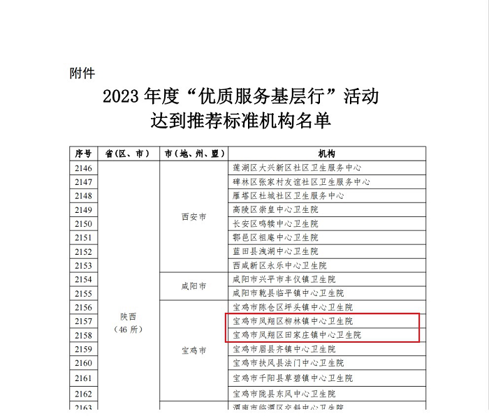 寶雞市鳳翔區(qū)兩家基層醫(yī)療機(jī)構(gòu)受到國(guó)家衛(wèi)生健康委通報(bào)表?yè)P(yáng)