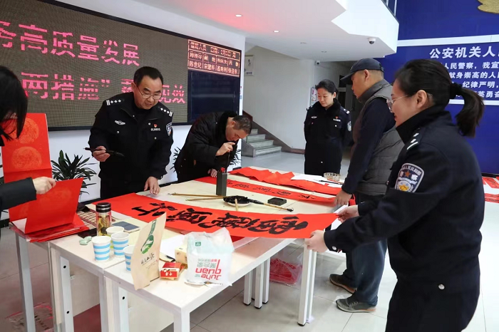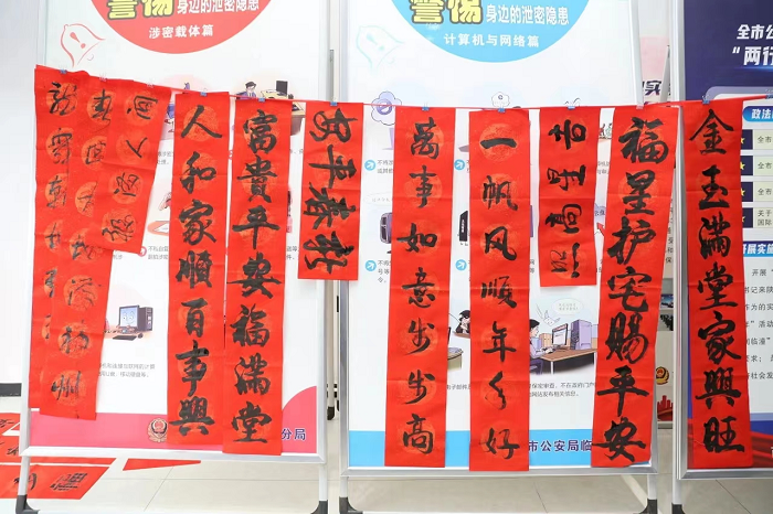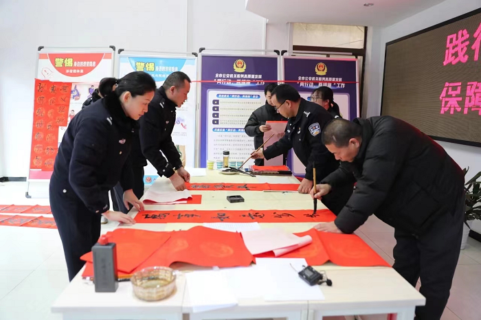 此次進(jìn)警營(yíng)寫春聯(lián)、送祝?;顒?dòng),不僅營(yíng)造了新年喜慶的文化氛圍,更讓廣大民輔警感受到了中華優(yōu)秀傳統(tǒng)文化的魅力與內(nèi)涵,在豐富警營(yíng)文化生活上發(fā)揮了重要作用。
