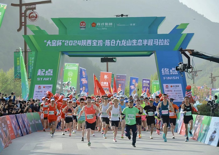 陜西省寶雞市陳倉(cāng)九龍山生態(tài)半程馬拉松開跑8千名跑者競(jìng)速醉美“天然氧吧”