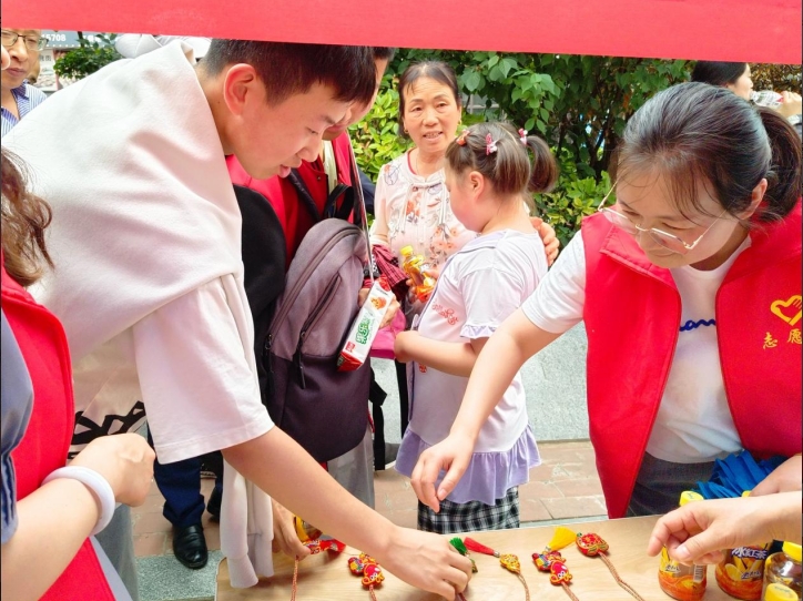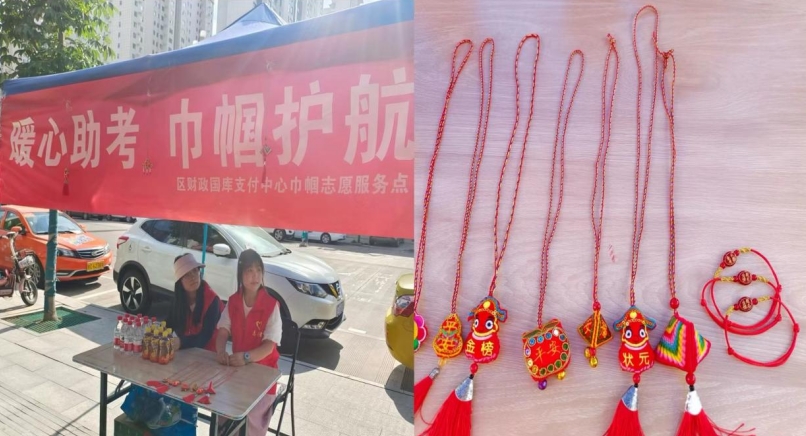 支付中心巾幗志愿者們?cè)缟掀唿c(diǎn)半前往城關(guān)中學(xué)附近布置服務(wù)點(diǎn),為考生和在外等候的家長(zhǎng)支起遮陽(yáng)棚,擺放桌椅、飲用水、飲料等,并在考生走出考場(chǎng)后遞上印有“狀元”、“高粽”、“金榜題名”等寓意美好的端午傳統(tǒng)飾品——香包、手鏈。一張張真誠(chéng)笑臉,一句句衷心祝福,巾幗志愿者們用自己真誠(chéng)的服務(wù)送去炎炎夏日的一絲清涼,緩解了考生及家長(zhǎng)們的緊張情緒,助力廣大考生考出水平、實(shí)現(xiàn)夢(mèng)想。