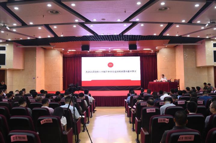 謝冬從充分認(rèn)識黨的二十屆三中全會召開的背景和重大意義、認(rèn)真領(lǐng)會黨的二十屆三中全會的主要內(nèi)容、認(rèn)真全面準(zhǔn)確理解《決定》提出的進(jìn)一步全面深化改革重大舉措、全力以赴抓好全會精神的貫徹落實等四個方面,對全會精神作了全面系統(tǒng)的闡釋和深入細(xì)致的解讀。與會人員表示,聆聽了今天的報告?zhèn)涫芄奈瑁袑嵃阉枷牒托袆咏y(tǒng)一到全會精神上來,統(tǒng)一到黨中央關(guān)于進(jìn)一步全面深化改革推進(jìn)中國式現(xiàn)代化的決策部署上來,以釘釘子的精神抓好抓實各項工作,凝心聚力加快高新區(qū)經(jīng)濟(jì)社會高質(zhì)量發(fā)展。會議要求,學(xué)習(xí)宣傳貫徹黨的二十屆三中全會精神,是當(dāng)前和今后一個時期的首要政治任務(wù)。全區(qū)各級各部門和廣大黨員干部要深入領(lǐng)會和理解把握黨的二十屆三中全會的重大意義、豐富內(nèi)涵、精髓要義和實踐要求,按照黨中央決策部署和省市委工作要求,推動黨的二十屆三中全會精神在高新區(qū)落地落細(xì)。要通過學(xué)習(xí)研討、集中培訓(xùn)、專題解讀等多種形式,推動全會精神深入基層、深入人心,同時要聚焦新型工業(yè)化體制改革、科技人才體制改革、區(qū)域?qū)ν忾_放改革等,真正把改革機(jī)遇轉(zhuǎn)化為發(fā)展紅利,以工作實績體現(xiàn)學(xué)習(xí)貫徹全會精神的成效。