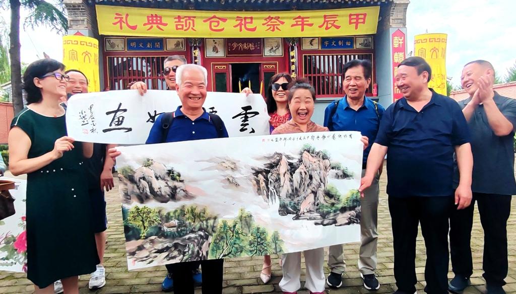 此次研學(xué)交流中,由長(zhǎng)安分會(huì)副會(huì)長(zhǎng)盧小龍主持,把長(zhǎng)安分會(huì)會(huì)員及書(shū)畫(huà)老師們精心準(zhǔn)備的書(shū)畫(huà)作品回贈(zèng)給陪同的縣文旅局同志和歧山分會(huì)同仁們。長(zhǎng)安分會(huì)對(duì)岐山蒼頡廟遺址和蒼頡墓遺址的考察調(diào)研,不僅深入了解了當(dāng)?shù)氐奈幕滋N(yùn),也為倉(cāng)頡文化的傳承與發(fā)展提供了新的思路和方向。