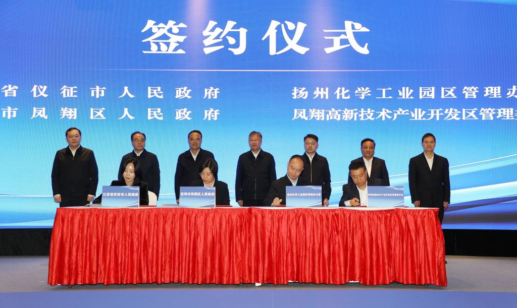 11月6日至7日,寶雞市鳳翔區(qū)黨政代表團來儀考察。7日上午,在儀舉行“鳳翔——長三角”化工產(chǎn)業(yè)合作推介會,并簽訂儀征與鳳翔、揚州化工園區(qū)與鳳翔高新區(qū)合作協(xié)議。儀征市委書記孫建年、寶雞市鳳翔區(qū)委書記王宏強出席推介會并致辭。鳳翔區(qū)委副書記、區(qū)長彭世忠主持會議。
