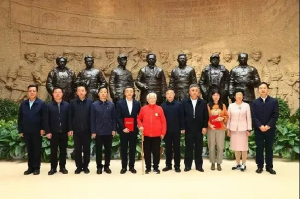 延安革命紀(jì)念地管理局黨政辦公室主任李秀忠向劉玉蘭老人頒發(fā)捐贈文物收藏證書