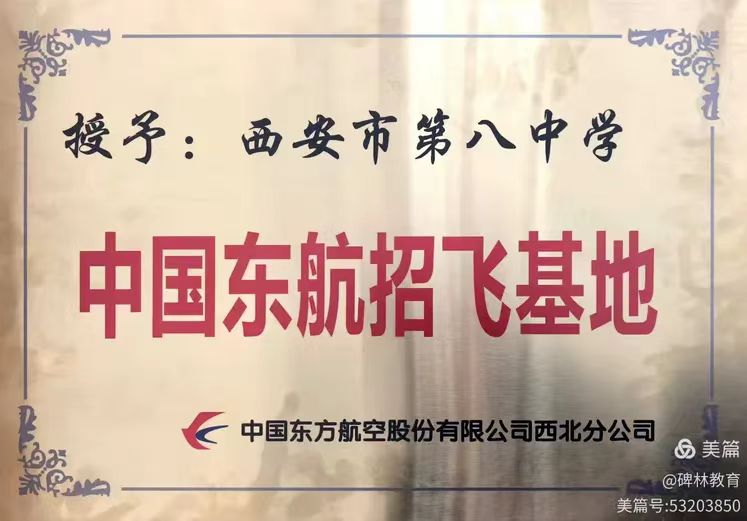 隨后,授牌環(huán)節(jié)正式開啟。民航飛行學(xué)院王主任將承載著信任與期許的牌匾授予八中,東方航空公司西北分公司魏主任亦莊重授牌,兩塊牌匾交相輝映,標(biāo)志著西安市第八中學(xué)作為合作基地正式揚帆起航。