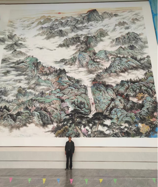 這次為中國電子彩虹顯示器件有限公司創(chuàng)作巨幅壁畫,是兩位老師再次鼎力合作繪畫,展現(xiàn)了兩位畫家扎實(shí)的繪畫實(shí)力和胸有成竹的巨幅畫面掌控力,讓中國傳統(tǒng)國畫藝術(shù)展現(xiàn)了中華民族天下大愛的雄渾氣勢和生生不息的磅礴魅力。