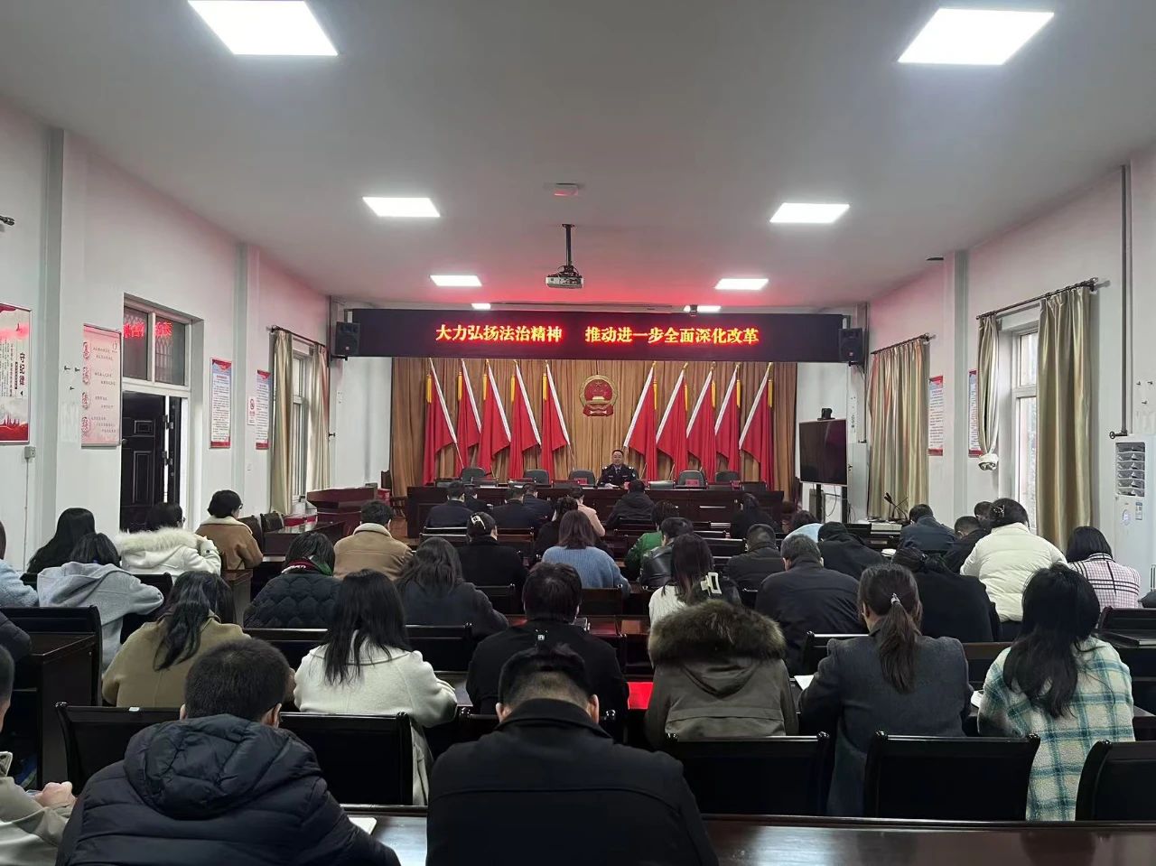 天王司法所開(kāi)展了憲法進(jìn)機(jī)關(guān)活動(dòng),為轄區(qū)村干部開(kāi)展法治講座。講座結(jié)合本地實(shí)際案例,用一個(gè)個(gè)鮮活發(fā)生在鄰村的土地糾紛實(shí)例,深入淺出地剖析如何巧用憲法精神、相關(guān)法律法規(guī)妥善化解矛盾。大家紛紛表示,要將所學(xué)所思融入村務(wù)工作點(diǎn)滴之中,當(dāng)好憲法“宣傳員”、法治“踐行者”,讓?xiě)椃ň裨谔焱蹑?zhèn)的每一寸土地上生根發(fā)芽,為鄉(xiāng)村振興筑牢堅(jiān)實(shí)法治根基。