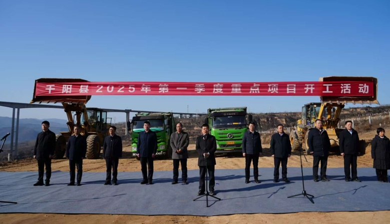 新年首個工作日,陜西省千陽縣2025年一季度重點(diǎn)項(xiàng)目集中開工活動在千陽明陽10萬千瓦光伏發(fā)電項(xiàng)目現(xiàn)場(崔家頭鎮(zhèn)趙家塬村)舉行,78個重點(diǎn)項(xiàng)目“滿弦開弓”,全面吹響今年項(xiàng)目建設(shè)的沖鋒號。