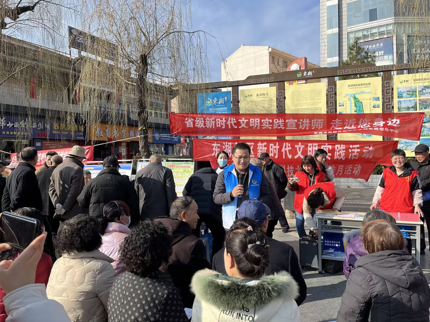 “文明禮儀是什么?它是清晨的一聲問候,是公交車上的一次讓座,是與人交談時(shí)的專注傾聽,是不小心碰撞后的一聲‘對不起’”。省級新時(shí)代文明實(shí)踐宣講師劉寅嘯在鳳翔東湖北廣場上和現(xiàn)場聽講的群眾分享道。2月27日,鳳翔區(qū)新時(shí)代文明實(shí)踐指導(dǎo)中心聯(lián)合東湖社區(qū)在東湖北門口開展“省級新時(shí)代文明實(shí)踐宣講師走進(jìn)您身邊”新時(shí)代文明實(shí)踐活動,為轄區(qū)居民開展文明禮儀宣講,并提供義診、義剪等家門口便民服務(wù)。