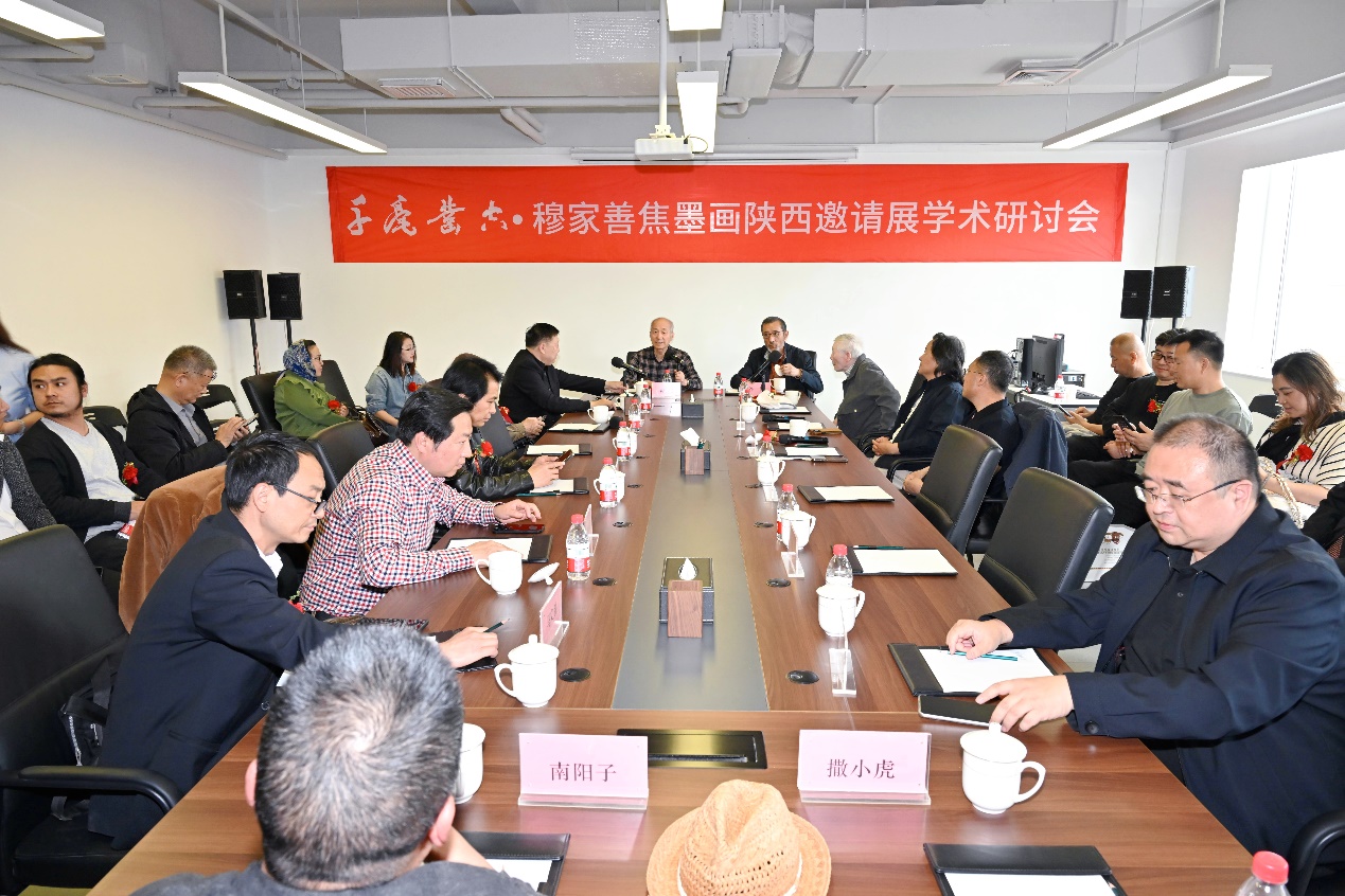 在作品捐贈儀式環(huán)節(jié),穆家善教授向陜西省文化和旅游廳、陜西省文化館各捐贈一幅代表性焦墨山水力作,以藝術(shù)精品反哺陜西文化發(fā)展。這份跨越時(shí)空的藝術(shù)饋贈,既是對陜西文化基因的禮敬,也彰顯了藝術(shù)家“以藝弘道”的文化擔(dān)當(dāng)。當(dāng)日下午,由著名美術(shù)理論家程征教授擔(dān)綱學(xué)術(shù)主持的“穆家善焦墨畫作品學(xué)術(shù)研討會”上,業(yè)界專家、學(xué)者圍繞其藝術(shù)風(fēng)格、技法創(chuàng)新及文化傳播等議題展開深入探討,從筆墨語言革新、美學(xué)價(jià)值重構(gòu)等維度展開思辨交鋒,既形成具有建設(shè)性的學(xué)術(shù)共識,為焦墨畫的未來發(fā)展構(gòu)建起新的學(xué)術(shù)視野。