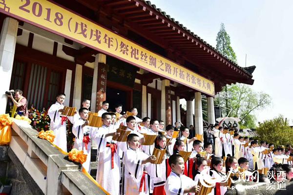 連續(xù)舉辦多年“清明公祭張騫”活動已經(jīng)成為漢中的一張鮮亮的名片。 人民網(wǎng)記者吳超 攝