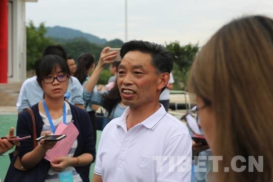 圖為銀廠溝村黨支部書記馬光明向采訪團記者們介紹脫貧情況及專業(yè)合作社情況