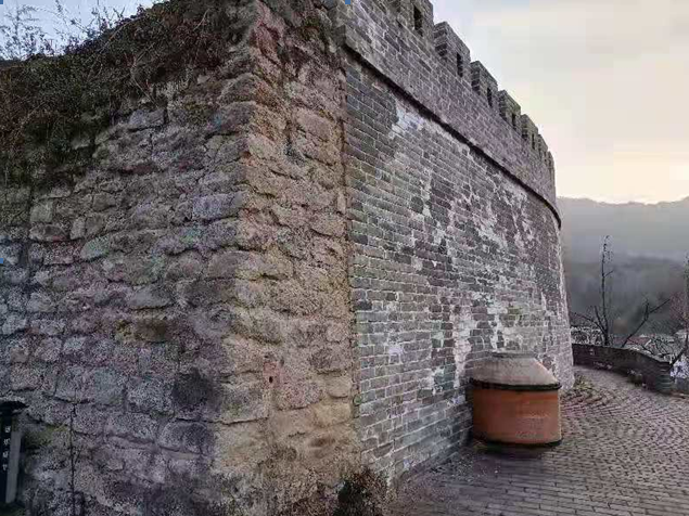 我們還在留壩文史專家、縣政協(xié)秘書長楊虎祺的引導下,專門走上舊廳城遺址瞻觀體味。沿著太平山蜿蜒而上,只見舊城巍然峙立,氣勢雄壯。我們走上西南方保存較好的城墻,踩著高低錯落的石塊、舊磚前行,城墻依山就勢、宛如游龍,還有一個經(jīng)過維修的角樓視線極好,縣城全貌盡收眼底。我眼看手摸,當年城墻內側糯米湯、白灰、沙土摻和的粘合土至今仍很牢固,可見工程之精細講究,值得我們學習借鑒。廳城建好,為保護民眾安全和全國南北通道之暢通,發(fā)揮了非常重要的作用,任同知功莫大焉!