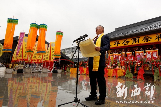 開幕式結(jié)束后,舉行了恭迎倉圣祭祀活動。按照主祭祭酒、上香,供奉祭品,敬獻花籃,向倉頡三鞠躬,恭讀祭文,主祭人宣布祭祀大典禮成進行。洛南縣委副書記、縣長王宇鵬恭讀祭文,陜西省、商洛市及洛南縣有關(guān)領(lǐng)導(dǎo)、文化界知名人士、倉頡文化研究會等參加祭祀并敬香祭拜。