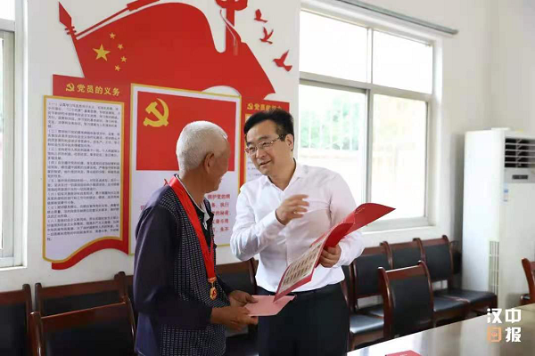 鐘洪江先后來到他們家中或工作地點,與各位老黨員親切交談,關(guān)切詢問他們的身體健康、生活起居、子女工作等情況,認(rèn)真傾聽他們的奮斗歷程和感人故事,向他們介紹了近年來漢中經(jīng)濟社會發(fā)展取得的成就和“十四五”發(fā)展目標(biāo),給他們送上了慰問金、感謝信和學(xué)習(xí)書籍,并為褚維鑒、徐登奎、李日學(xué)三位老黨員頒發(fā)并佩戴“光榮在黨50年”紀(jì)念章。