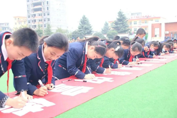 在報(bào)告會(huì)現(xiàn)場還進(jìn)行了“小手拉大手,平安進(jìn)萬家”平安創(chuàng)建千人簽名活動(dòng)。同學(xué)們把自己的名字寫在橫幅上,也把遵紀(jì)守法的決心刻在了心里。