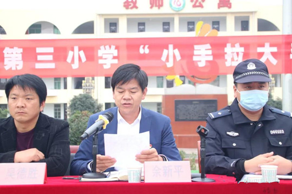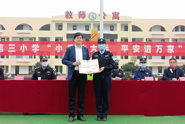 會(huì)上,第三小學(xué)黨支部書記、校長余新平向法制副校長頒發(fā)聘書。