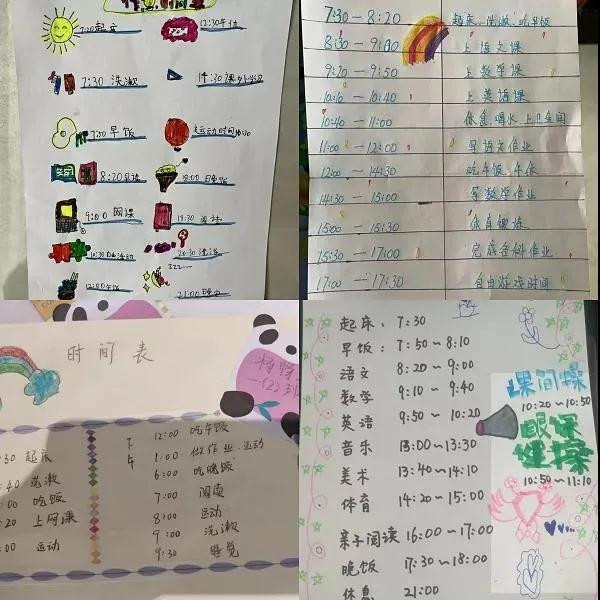 制定措施,設(shè)立目標(biāo)。各年級組制定科學(xué)詳實(shí)的《學(xué)生宅家一日常規(guī)》,學(xué)生和家長結(jié)合家庭實(shí)際制定宅家活動序列表,包扶教師指導(dǎo)審定,并常態(tài)化監(jiān)督實(shí)施。《學(xué)生宅家一日常規(guī)》要求疫情期間,學(xué)生堅(jiān)決不外出,不參加校外培訓(xùn)機(jī)構(gòu),嚴(yán)格執(zhí)行“五項(xiàng)管理”要求。宅家活動主要包括文化課學(xué)習(xí)、藝術(shù)素養(yǎng)培養(yǎng)、健體運(yùn)動、家務(wù)勞動、孝老愛親等內(nèi)容?;顒有蛄斜斫Y(jié)合家庭實(shí)際,圍繞一日常規(guī)科學(xué)制定,確?;顒觾?nèi)容搭配合理、活動時(shí)間分配合理,做到勞逸結(jié)合、張弛有度。學(xué)生和家長自覺執(zhí)行,確保活動有效。