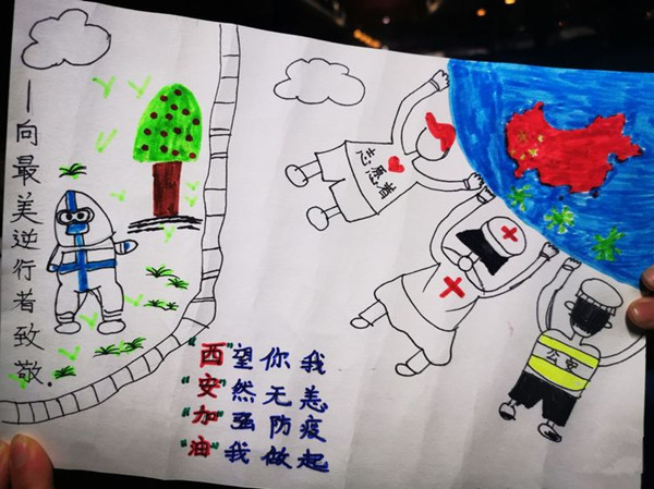 當車行駛到雁塔路時,我看見了窗外街道的蕭條,寬闊的大路上一個人也沒有,只看見幾個穿著防護衣的工作人員在巡邏,一個車也沒有,昔日的繁華盛景早已蕩然無存,淚水模糊了我的雙眼,我的城市生病了,這更加堅定了我的信心,我們一定要盡快篩查出陽性病例,全面做好防控,早日恢復盛世長安的繁華景象。