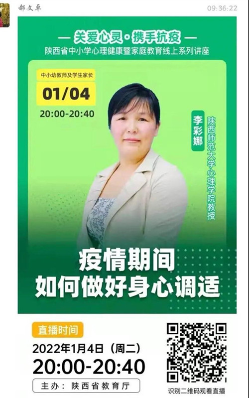 相知無遠(yuǎn)近,萬里尚為鄰。西安新冠疫情爆發(fā),商州區(qū)防疫形勢空前嚴(yán)峻。為了進(jìn)一步做好疫情防控下學(xué)生和家長的心理健康工作,區(qū)第一小學(xué)于2022年1月4日至1月8日組織全校教師以及所有學(xué)生家長,觀看了由陜西省教育廳主辦的“關(guān)愛心靈,攜手抗疫”中小學(xué)心理健康線上系列講座。