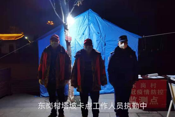在黨員、干部、志愿者的積極參與支持下,東崗村迅速在入村的四個路口和三個移民小區(qū)共設(shè)立7個疫情防控檢測卡點,每個檢測卡點人員頂風(fēng)冒雪不畏嚴(yán)寒24小時值守,對返商人員和車輛進(jìn)行嚴(yán)格檢查、登記,嚴(yán)防死守“入口關(guān)”。在村黨支部的號召下,東崗村黨員、群眾、志愿者及社會各界,有錢出錢,有力出力,有人出人,有物捐物,自發(fā)形成了一支強(qiáng)大的抗疫志愿隊伍,為保護(hù)廣大群眾的生命健康,不計個人得失,勇往直前,為防疫工作付出了不懈努力。很少有人知道他們叫什么,只知道他們是一名志愿者,他們用行動詮釋了東崗村共克時艱、眾志成城的全民抗疫精神。