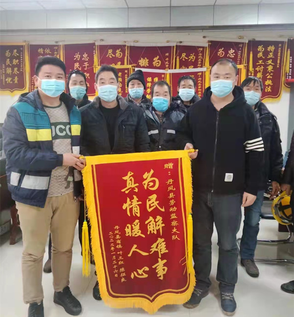 近日,一幫農(nóng)民工兄弟捧著錦旗來到丹鳳縣勞動(dòng)監(jiān)察大隊(duì),握著工作人員的雙手,激動(dòng)地說:“太感謝你們了,我們對(duì)能否要回這些工資都不抱希望了,真沒想到,你們的工作責(zé)任心這么強(qiáng),效率這么高,這么快就讓我們拿到了自己的血汗錢,你們真是人民的好干部!”一句簡(jiǎn)單的話語,卻蘊(yùn)藏著太多的心酸。