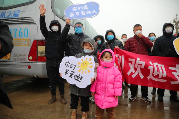 上午10點(diǎn)10分和12點(diǎn)30分,商洛北收費(fèi)站出口廣場(chǎng),市中心醫(yī)院分別舉行了簡(jiǎn)短的歡迎儀式。部分醫(yī)院同事、隊(duì)員家屬手捧鮮花和歡迎橫幅早早迎在路邊,臉上洋溢著喜悅。市中心醫(yī)院在家領(lǐng)導(dǎo)班子成員及部分職能科室負(fù)責(zé)人參加。