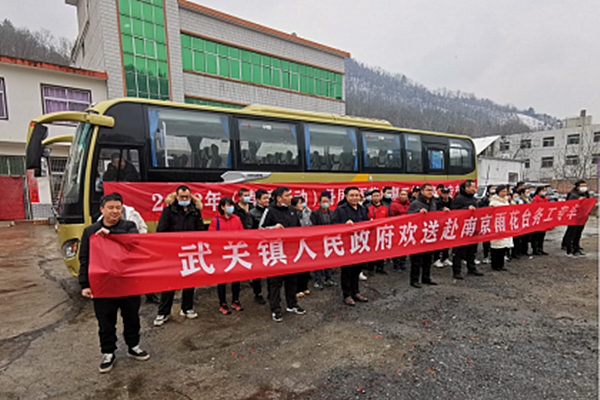 (通訊員 程云芳 劉馳)2月6日上午,丹鳳縣武關(guān)鎮(zhèn)組織了48名務(wù)工人員,統(tǒng)一乘坐專(zhuān)車(chē),赴江蘇省南京市務(wù)工。
