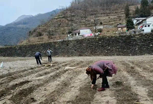 達(dá)仁鎮(zhèn)麗光村一組村民宋治華一大早就來(lái)到自家洋芋地,他說(shuō)今年有200多斤脫毒洋芋要進(jìn)行播種?!扒皟商煜铝藞?chǎng)雪,都說(shuō)瑞雪兆豐年,今年我買(mǎi)了一些脫毒洋芋,聽(tīng)說(shuō)產(chǎn)量高、效益好,我們要抓緊下種,期待有個(gè)好收成。我還有12畝的茶園還需要松土呢,也希望春茶能賣(mài)上好價(jià)錢(qián)。”說(shuō)罷,宋治華便加快了揮動(dòng)鋤頭的頻率。不遠(yuǎn)處的另一群農(nóng)戶也在給土地“松筋骨”、清雜草,希望能獲得好收成。