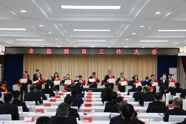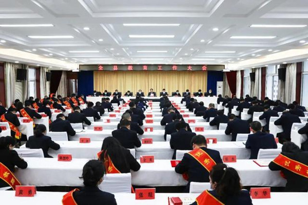 大會(huì)以視頻形式召開(kāi),所有在職縣級(jí)領(lǐng)導(dǎo),部分縣直部門(mén)負(fù)責(zé)人,縣科教體局班子成員,中小學(xué)校長(zhǎng)、幼兒園園長(zhǎng),受表彰先進(jìn)個(gè)人及基層教師代表在縣委五樓東主會(huì)場(chǎng)參加會(huì)議;部分縣直部門(mén)負(fù)責(zé)人,縣科教體局下屬單位及股室負(fù)責(zé)人,縣職教中心、城區(qū)中小學(xué)和幼兒園班子成員在縣政府六樓分會(huì)場(chǎng)參加會(huì)議;各鎮(zhèn)(街道)黨政班子成員,鎮(zhèn)屬站辦所(中心)負(fù)責(zé)人,各村(社區(qū))黨支部書(shū)記,轄區(qū)中小學(xué)班子成員和部分班主任、教師代表在鎮(zhèn)辦分會(huì)場(chǎng)參加會(huì)議。