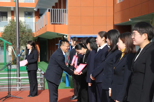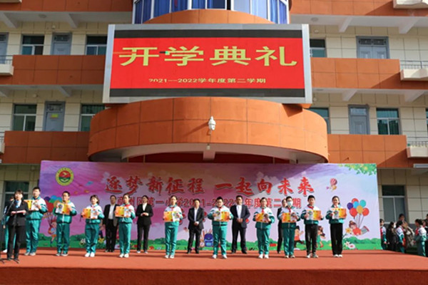 校黨總支書記、校長田小龍發(fā)表了熱情洋溢的新學期致辭,他對學校上學期各項工作及取得的成績予以充分肯定,并希望全體教師要主動適應“雙減”狀態(tài)下的工作和學習,秉承“為國育人,為黨育才”的初心使命,加強學習,不斷提高師德修養(yǎng)和業(yè)務能力,努力成為組織放心、學生愛戴、家長信賴的好老師。希望全體學生一要心懷理想,奮勇向前;二要自主學習,持之以恒;三要以書為友,陶冶情操;四要胸懷感恩,滿懷愛心。