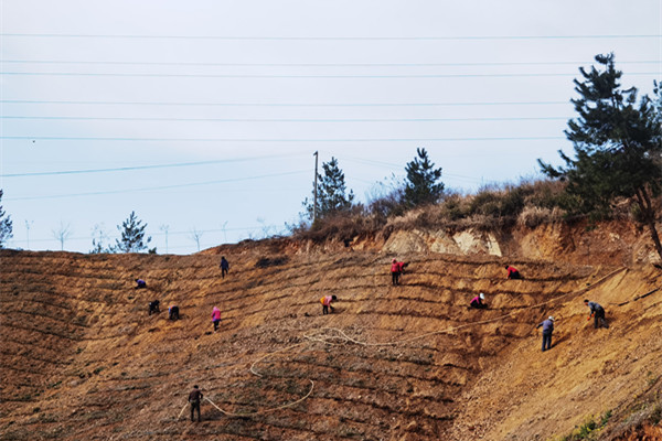 追著春光趕農(nóng)時,鄉(xiāng)村振興開新局。連日來,在商南縣富水鎮(zhèn)茶海公園茶葉種植基地里,村民們正搶抓適宜的氣候及土壤濕潤的有利時機栽植茶苗,打窩、插苗、壓土、澆水,一顆顆小茶苗栽下去,為大地鋪上了一層新綠,也孕育著增收致富新希望。