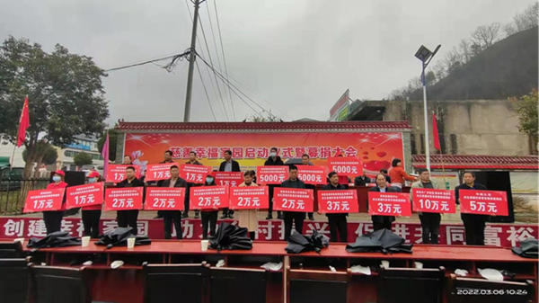 因疫情原因,原定活動(dòng)時(shí)間沒有預(yù)期開展,該村在2021年12月31日建立了五里鋪慈善工作微信群,發(fā)動(dòng)企事業(yè)單位及個(gè)人線下捐款,商洛市廣濟(jì)醫(yī)院董事長(zhǎng)章功孝帶頭捐款10萬(wàn)元,村支部書記帶頭捐款1萬(wàn)元,陸續(xù)帶動(dòng)95個(gè)單位及個(gè)人線下籌集善款達(dá)25萬(wàn)元。在3月6日慈善幸福家園啟動(dòng)儀式暨募捐大會(huì)上,縣直部門、企事業(yè)單位、村社區(qū)、在外創(chuàng)業(yè)人員和本村干部群眾現(xiàn)場(chǎng)募捐27萬(wàn)元,共籌集善款52萬(wàn)元。