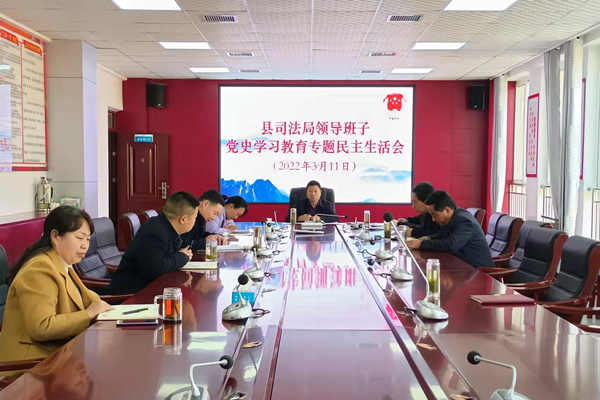 3月11日下午,商南縣司法局班子召開黨史學習教育專題民主生活會,縣司法局黨組書記、局長周建國主持會議,全體班子成員參會,股室長及下屬單位負責人列席會議。