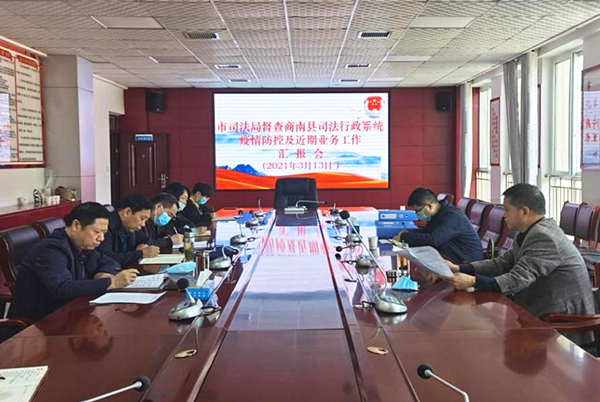 3月13日,商洛市司法局黨組成員、副局長(zhǎng)李學(xué)哲帶隊(duì)深入商南縣司法行政系統(tǒng)督查指導(dǎo)疫情防控工作,縣司法局黨組書(shū)記、局長(zhǎng)周建國(guó),黨組成員、副局長(zhǎng)阮聯(lián)青陪同。