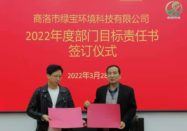 為確保2022年各項工作任務圓滿完成,3月28日,商洛市綠寶環(huán)境科技有限公司舉行了2022年目標責任書簽字儀式,儀式由董事長張小峰主持。