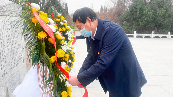 在莊嚴肅穆的烈士紀念碑前,黨員代表懷著崇敬之情,肅立默哀,黨委書記張康美、黨委副書記院長陳詩軍分別敬獻花籃,全體黨員深情鞠躬。淡雅的花環(huán),象征著先烈素潔的靈魂;怒放的花朵,寄托著我們無盡的哀思;高聳的豐碑,指引著我們奮進前行;英雄的事跡,感召我們繼往開來的決心。