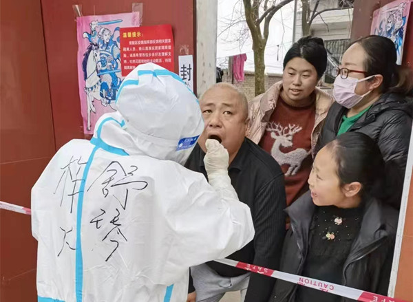 12月25日當(dāng)天氣溫零下8度,數(shù)九寒天,寒風(fēng)凜冽,大雪磅礴。村主任提出:“今天集中采樣吧,你們腳下太滑入戶不安全……”她斷然拒絕:“不行,集中傳播風(fēng)險太大,我們還是入戶!”穿上靴套,行走在雪地里真的是一走三哧溜,任憑刺骨的寒冷在她的身體上見縫插針,入戶核酸采集她絲毫沒有懈怠,采集20多戶時已凍的瑟瑟發(fā)抖,但為了及時完成任務(wù)盡早篩查出陽性病例,她沒有停下手中的工作,顫巍巍的將一個咽拭子掰斷,凍僵的手使勁才將采集管擰緊,手太用力了腳下一滑重重的跌坐在地上,隊友趕緊拉她,她卻說:“我沒事,先把這個放好!”她拼盡全力地站了起來,抖抖身上的雪,笑著說:“走,繼續(xù)!”……就這樣,在雪地里踉踉蹌蹌地采完樣本已是下午了。