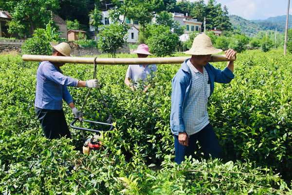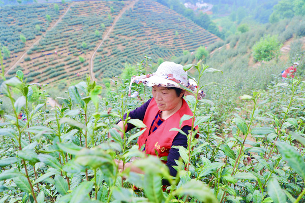 “我們家有3畝多地,以前主要種莊稼,靠天吃飯,土地流轉(zhuǎn)后,租給茶場(chǎng)每畝地每年租金是750元,我在茶場(chǎng)務(wù)工一年能賺一萬多元,采茶能收入四五千元,七七八八算下來能每年能收入兩萬多元。”正在地里忙碌的村民胡曉琴說。
