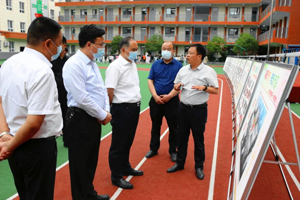 張國(guó)瑜一行進(jìn)入校園后,詳細(xì)了解了學(xué)校建設(shè)布局、運(yùn)動(dòng)休閑設(shè)施等情況,田小龍校長(zhǎng)向領(lǐng)導(dǎo)們匯報(bào)了學(xué)校的發(fā)展及教育教學(xué)開(kāi)展情況。接著,張國(guó)瑜走進(jìn)了孩子們的中間,饒有興致地觀看了同學(xué)們表演的《童心向黨》等節(jié)目,孩子們精彩的表演贏得了在場(chǎng)領(lǐng)導(dǎo)的熱烈掌聲。隨后,張國(guó)瑜向孩子們贈(zèng)送了書(shū)包、水彩筆等禮物,并叮囑孩子們一定要刻苦努力學(xué)習(xí),加強(qiáng)體育鍛煉,努力成長(zhǎng)為德智體美勞全面發(fā)展的好少年。孩子們捧著這份充滿著關(guān)懷和呵護(hù)的最美禮物,幸福的笑容洋溢在可愛(ài)的小臉上。