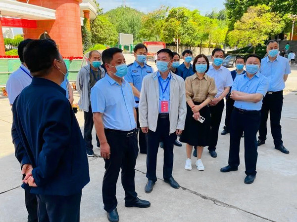 謝曉軍一行詳細(xì)了解山陽中學(xué)考點考場布置、監(jiān)控設(shè)施、試卷保管、后勤保障、飲食住宿、疫情防控等情況,聽取考前準(zhǔn)備工作開展情況匯報,并對做好高考保障工作提出明確要求。