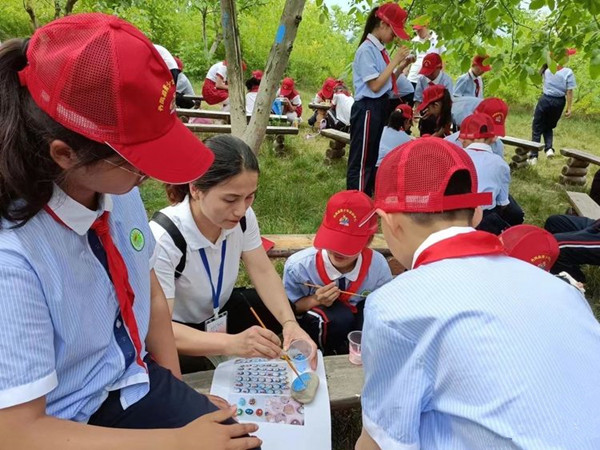 孩子們通過在石頭樹干上繪畫,盡情地發(fā)揮想象力和創(chuàng)造力,促進(jìn)了學(xué)生對(duì)美的感悟,實(shí)現(xiàn)了美育教育。