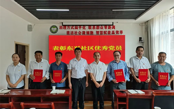 表彰一批先進。為進一步激勵社區(qū)廣大基層黨員在為民服務中展現(xiàn)新?lián)斝伦鳛?,自覺堅守初心、擔當使命,東興社區(qū)黨總支對5名優(yōu)秀黨員頒發(fā)榮譽證書,幫扶單位縣移民辦進行現(xiàn)金表彰鼓勵。