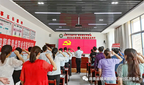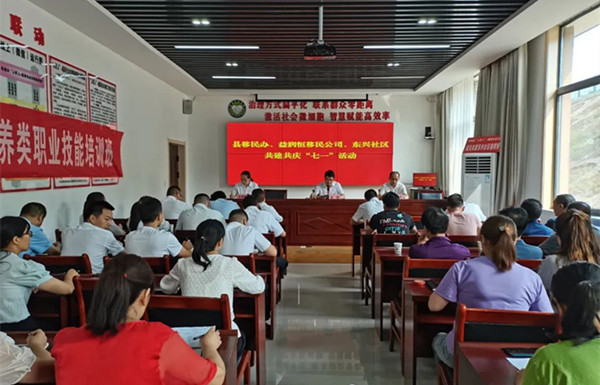 為了慶祝中國共產黨成立101周年,7月1日上午,商南縣移民辦、縣益潤恒移民公司、東興社區(qū)聯(lián)合開展了共慶“七一”系列活動,縣移民辦全體干部、縣益潤恒移民產業(yè)公司管理層、東興社區(qū)部分黨員、駐村工作隊、全體干部共40余人參加了此次活動?;顒佑蓶|興社區(qū)黨總支書記黨媛媛主持,共分為講黨課、表彰優(yōu)秀黨員和慰問困難黨員、重溫入黨誓詞、觀看紅色微電影等環(huán)節(jié)。