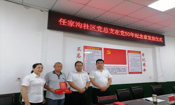 頒發(fā)“光榮在黨50年”紀念章。老黨員桂方友擔任村干部20余年,將青春和一腔熱血揮灑在任家溝社區(qū)這片土地上。他1972年07月入黨至今黨齡50年,由包社區(qū)領導田傳江、駐村第一書記李玫、黨支部書記汪東為桂方友頒發(fā)“光榮在黨50年”紀念章和榮譽證書。表達了黨組織對老黨員多年工作成績的認可和鼓勵,傳遞組織對老黨員的關心、愛護與牽掛。希望老黨員們能夠離崗不離黨,大力弘揚黨的優(yōu)良傳統(tǒng),積極發(fā)揮“傳幫帶”作用,示范引領中青年黨員干部堅守初心、勇?lián)姑?/p>